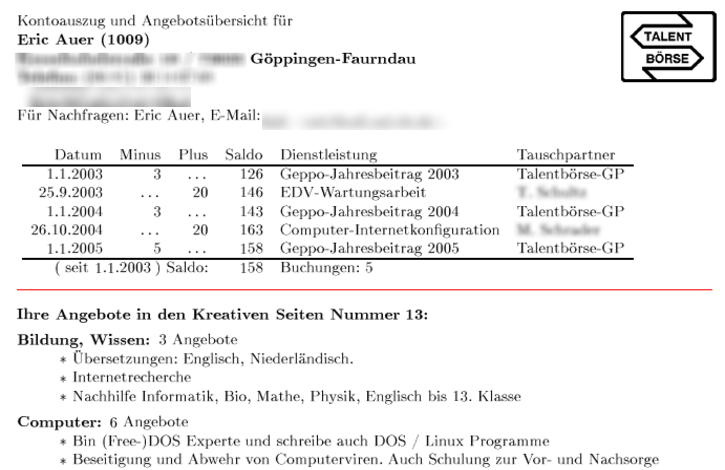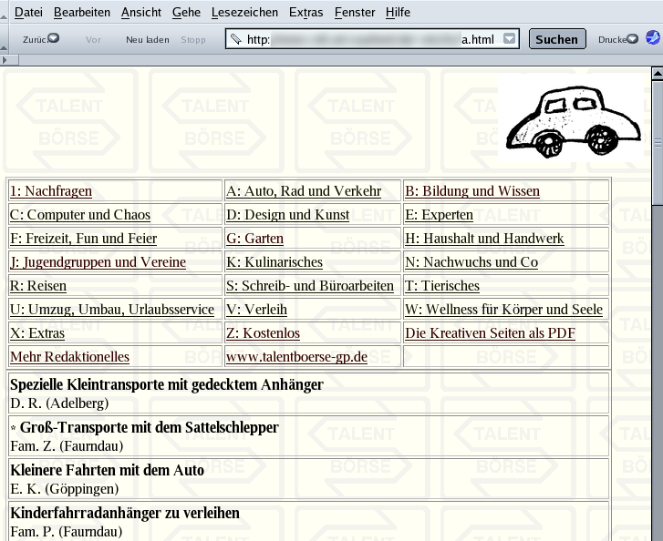 Ausserdem anonymisierte Kreative Seiten zum Weitergeben